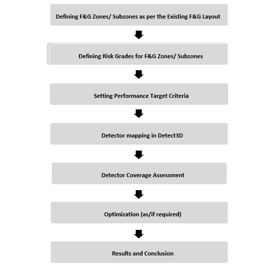 The F&G mapping study and detection coverage assessment for fire and gas detection within concerned F&G Zones was performed with industry most powerful and revolutionary software Detect 3D. Detect 3D is a software which uses 3D technologies for assessment and visualization.